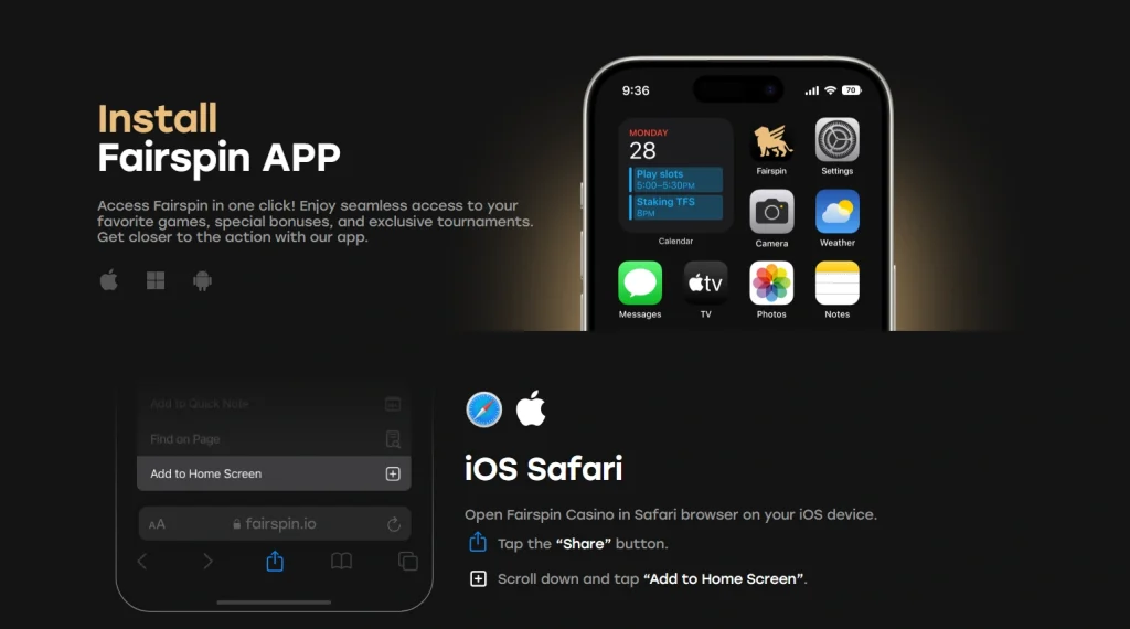 La era de las aplicaciones nativas pesadas y lentas ha terminado. En Fairspin, hemos optado por una solución de vanguardia que te ofrece lo mejor de ambos mundos: la funcionalidad completa de una aplicación, pero con la accesibilidad de una plataforma basada en el navegador. No necesitas descargar ninguna Fairspin app; solo abre tu navegador móvil preferido, visita nuestro sitio web y estarás listo para jugar.